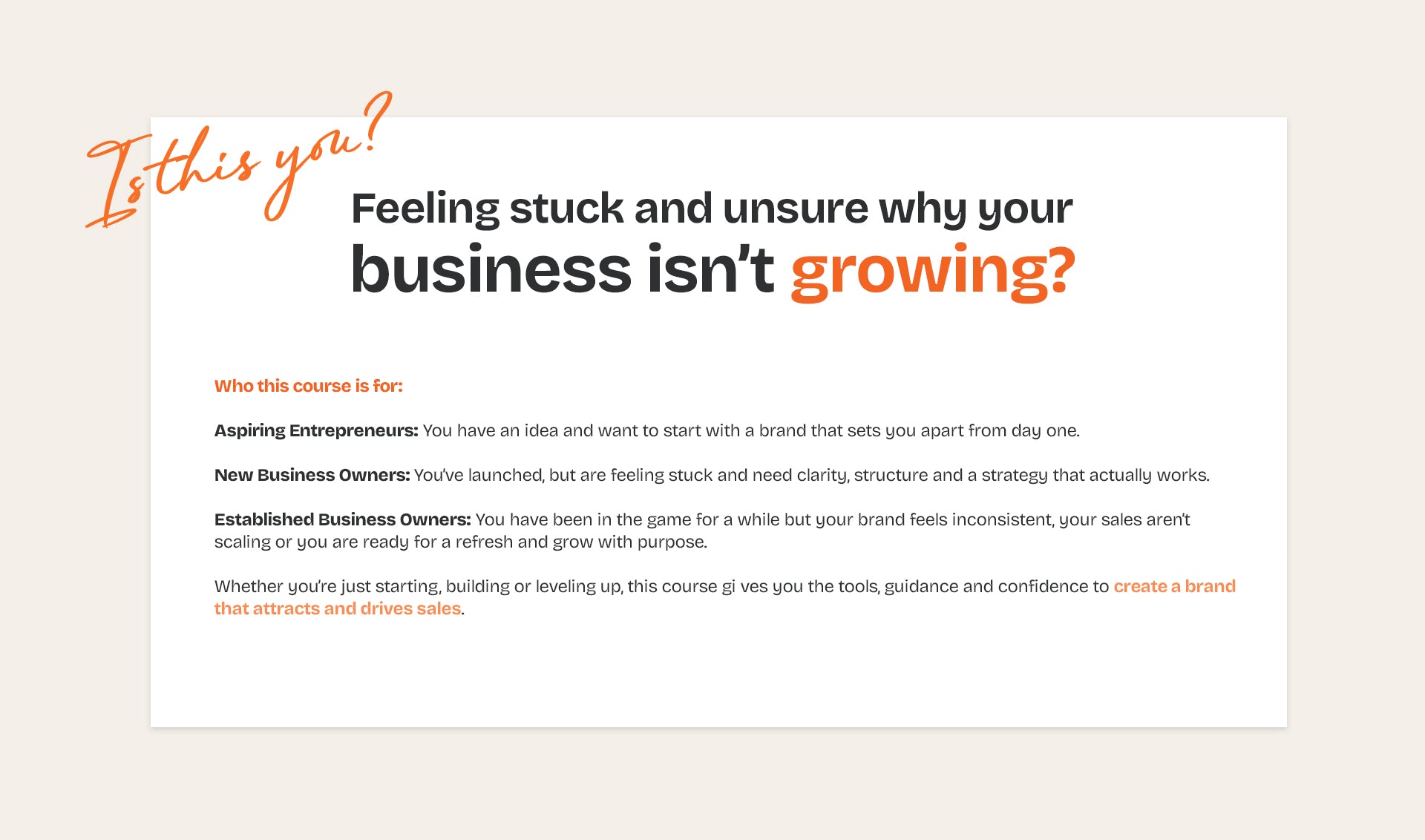 As a small business owner this is probably the best thing I've done so far to understand my business even more. The work that you need to put into it will help you focus on what's important to your business. All the videos and tools are perfect to get an understanding of what you need to take your business to the next level. Anyone that is thinking of starting a small business or has a small busines, this course can set you up to succeed in every way!